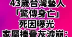 43歲台灣藝人「驚傳身亡…」死因曝光! 家屬捧骨灰淚崩:「可以回家了...」