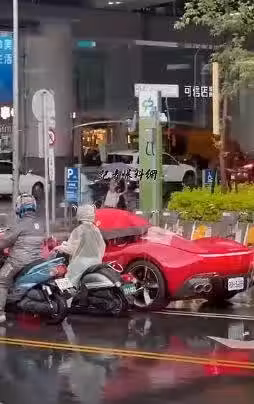 8500萬法拉利現身台中街頭!「撐傘開車」路人看傻 車主曬車內視角回應了