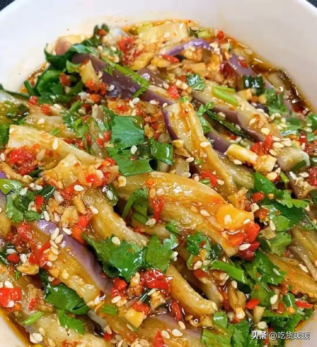 4再將調料汁和蒜末淋入擺好的茄子上即可