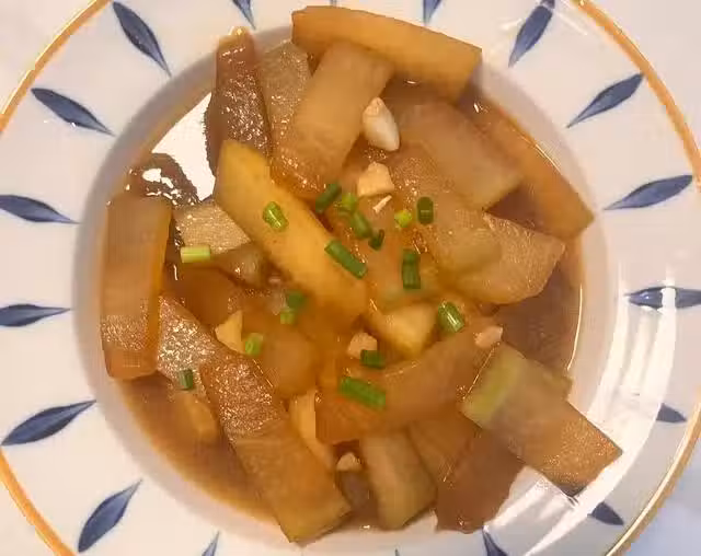 食材:冬瓜、幾瓣蒜、一根小蔥、生抽、蚝油,還有鹽。