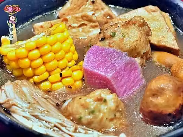 c. 生腰果5粒、玉米一根切段、巴西磨菇5朵、金針菇1小把、豆腐揚5塊、香菇丸5粒、紫山藥一小段、黑芝麻1小匙
