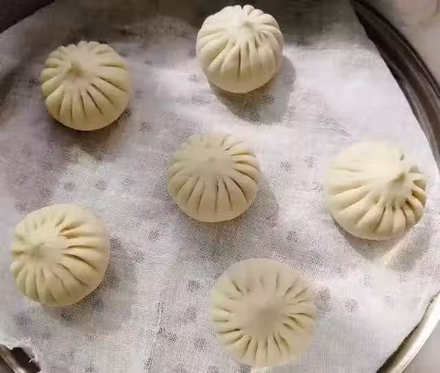 原料:麵粉500克,酵母5克,泡打粉3克,素餡隨意