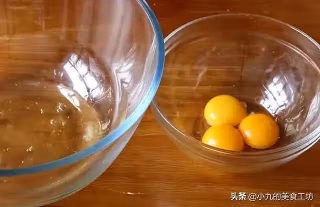 1、準備3個雞蛋,蛋清蛋白分離之後,分別放入兩個碗中備用。咱們先來製作蛋黃糊。碗中加入400g白豆沙餡、3個蛋黃、30g白糖,然後用筷子將它們充分混合在一起,最後攪拌成粘稠的蛋黃糊就可以了。