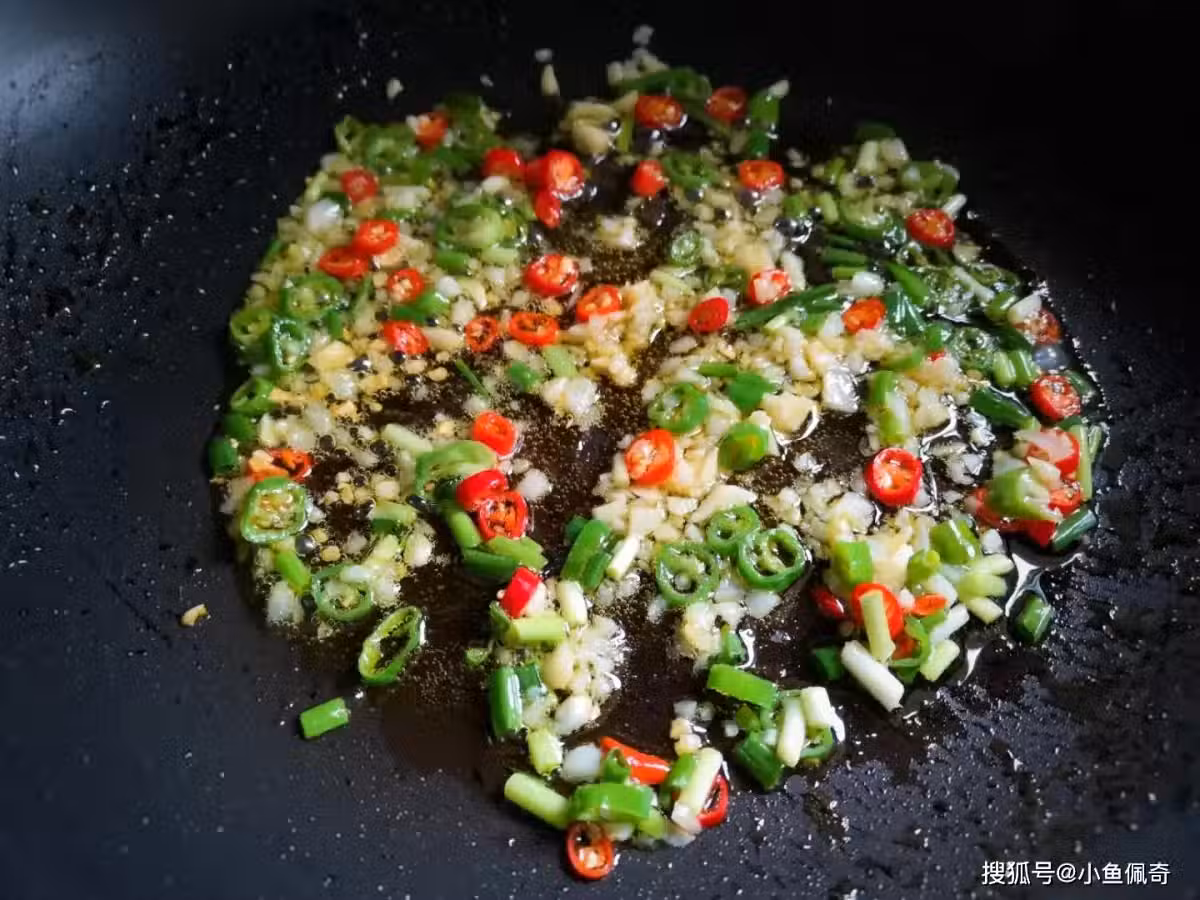 2. 加入椒鹽:將事先準備好的椒鹽加入鍋中翻炒均勻。