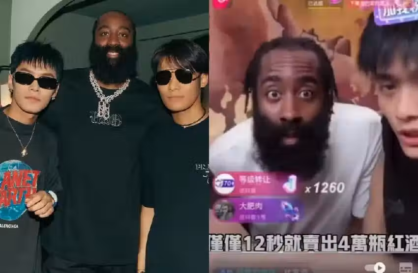 小楊哥(左)和NBA球星哈登等多位名人合作過。(圖/微博)