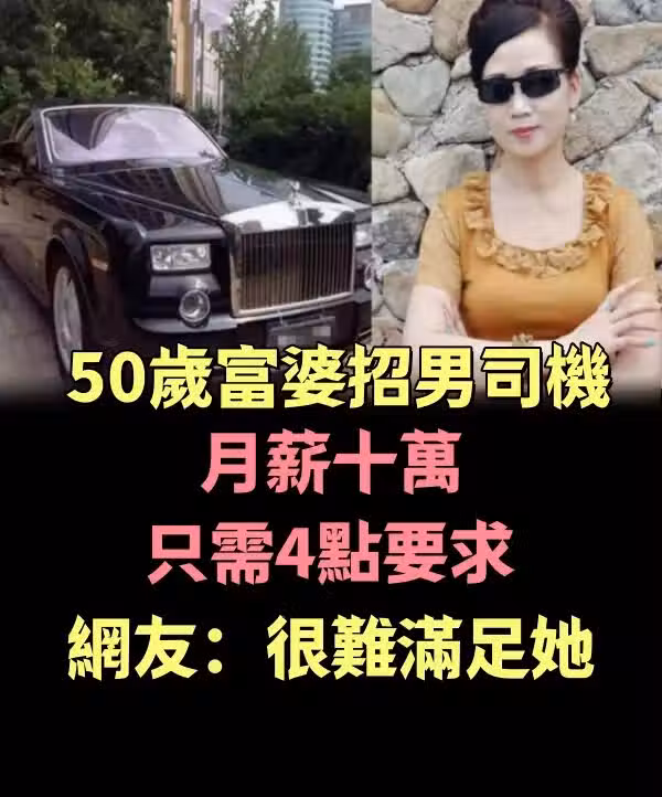 50歲富婆招男司機,月薪十萬隻需4點要求,網友:很難滿足她