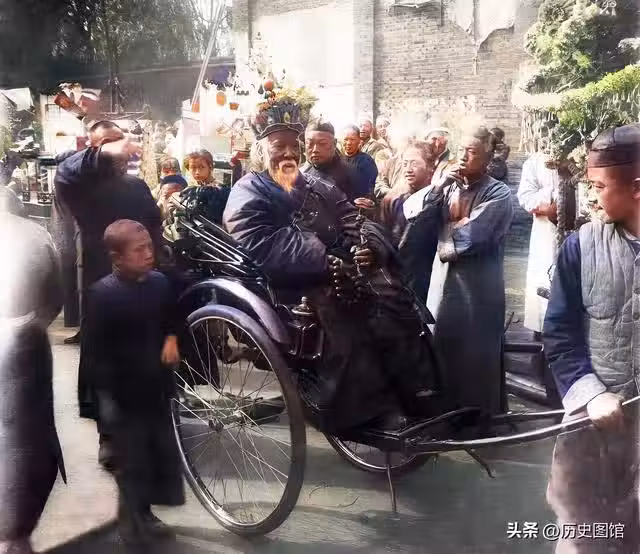 民國時期,一名德高望重的僧人出現在街頭。他身穿僧袍,頭戴毗盧帽,手拿如意和佛珠,坐在一輛黃包車上,正準備去參加一場法事活動。他這身獨特的裝扮,引得路人紛紛圍觀。