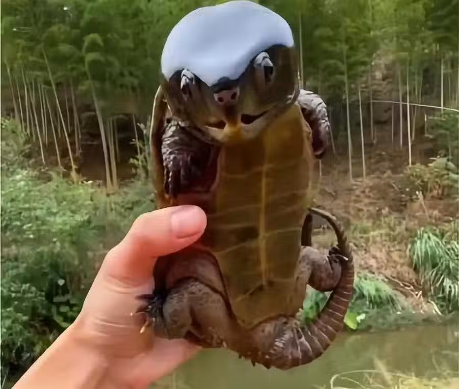 專家一驗竟是瀕危物種「烏龜變異了」?男子釣魚釣到一隻「鳥頭鷹嘴蛇尾」龜