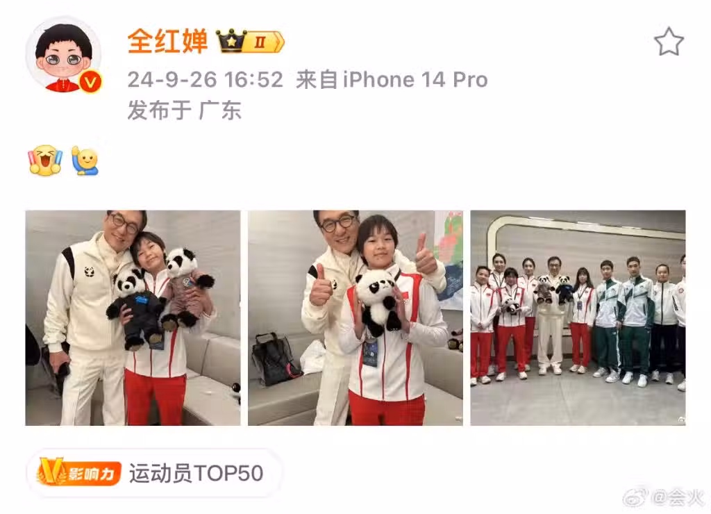 全紅嬋「一跳」爆紅,不過她私下仍是活潑、青春的少女,喜歡搜集公仔,看到偶像谷愛凌會興奮擁抱對方,大讚偶像優秀又漂亮,也讓外界見識到全紅嬋真誠、可愛的一面。