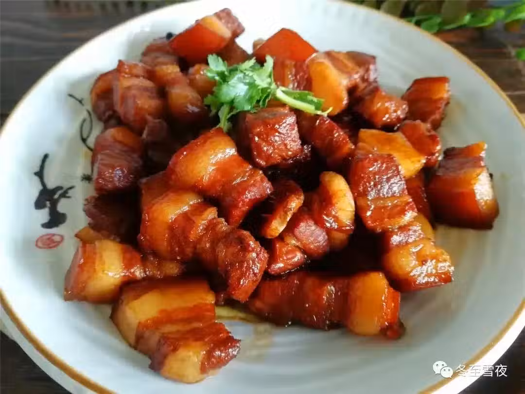【家常紅燒肉】所需材料:五花肉500克、油鹽適量、蔥1段、姜2片、大蒜2瓣、花椒10幾粒、大料2個、料酒1湯匙、紅燒醬油1湯匙、生抽醬油1湯匙、冰糖1湯匙、