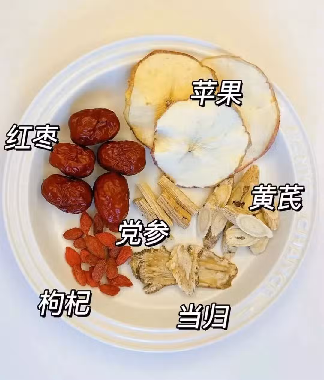 ⑤黃芪桂圓阿膠水:前幾天分享一款我媽喝了十幾年的黃芪桂圓阿膠水,很補氣血,美容又養顏,每次姨媽過後,我媽都會給我煮上這麼一鍋,特別是臉色蠟黃眼袋重,說話容易累,上樓氣喘吁吁,手腳冰涼的姐妹也可以多喝~ 【做法】:先準備好黃芪5g,當歸3片,黨參3g,桂圓乾5顆,去核紅棗5顆,這些食材洗乾淨後放入養生,倒入適量清水,加入阿膠1塊,大火煮開,轉小火煮15分鐘即可。