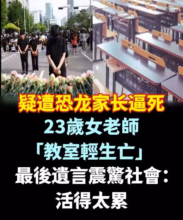 遭恐龍家長逼死,23歲女老師「教室輕生亡」 最後遺言震驚社會:活得太累