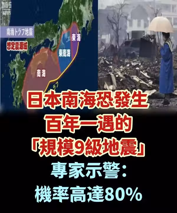 日本南海恐發生百年一遇的「規模9級地震」?專家示警:機率高達80%!