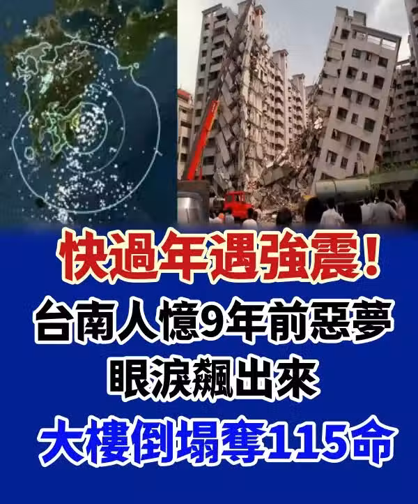 許多南部民眾嚇到不敢睡,想起9年前的小年夜凌晨,當時高雄美濃髮生規模6.6強震,台南市新化震度達7級,導致「維冠金龍大樓」倒塌事件。