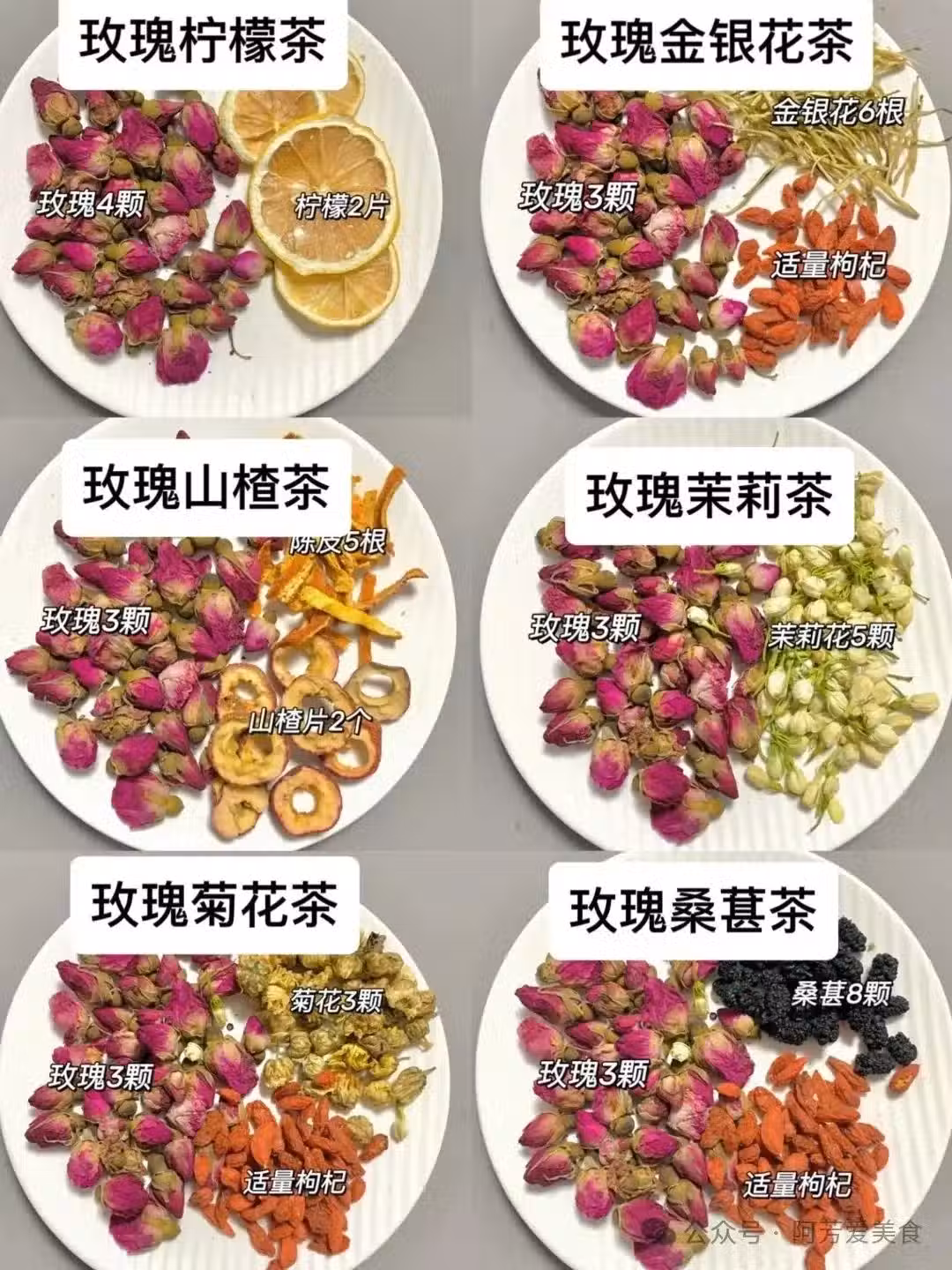 玫瑰茉莉,玫瑰和茉莉的清香融合的特別好,喝起來不僅能感覺到淡淡的玫瑰味,還能感覺到茉莉的花香味!喝了讓人還想喝。玫瑰山楂則是酸酸甜甜的,喝了不會膩。