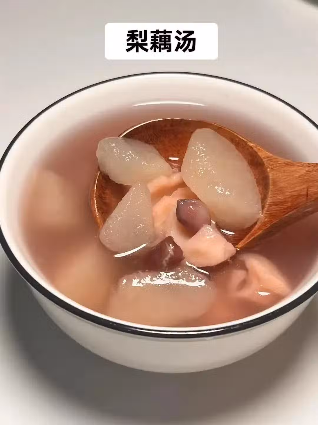 蓮藕洗凈切段拍碎,雪梨去皮切塊,和花生一塊煮,煮20-30分鐘,滿屋的清香味。