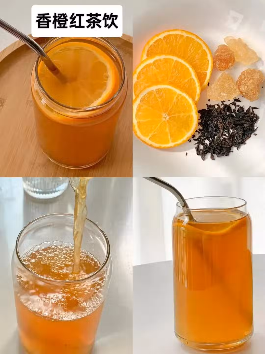 用鹽搓洗乾淨香橙,切片,和紅茶葉、冰糖一起放過養生壺中加水煮20分鐘,倒出來以後加一片橙子裝飾,可以反覆煮水喝直到沒味了。