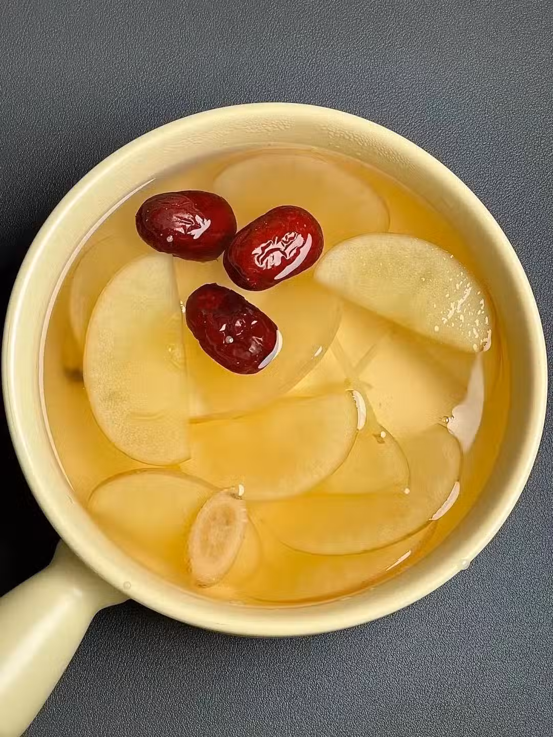 蘋果1個、生薑3片、紅棗7顆、黃芪6片