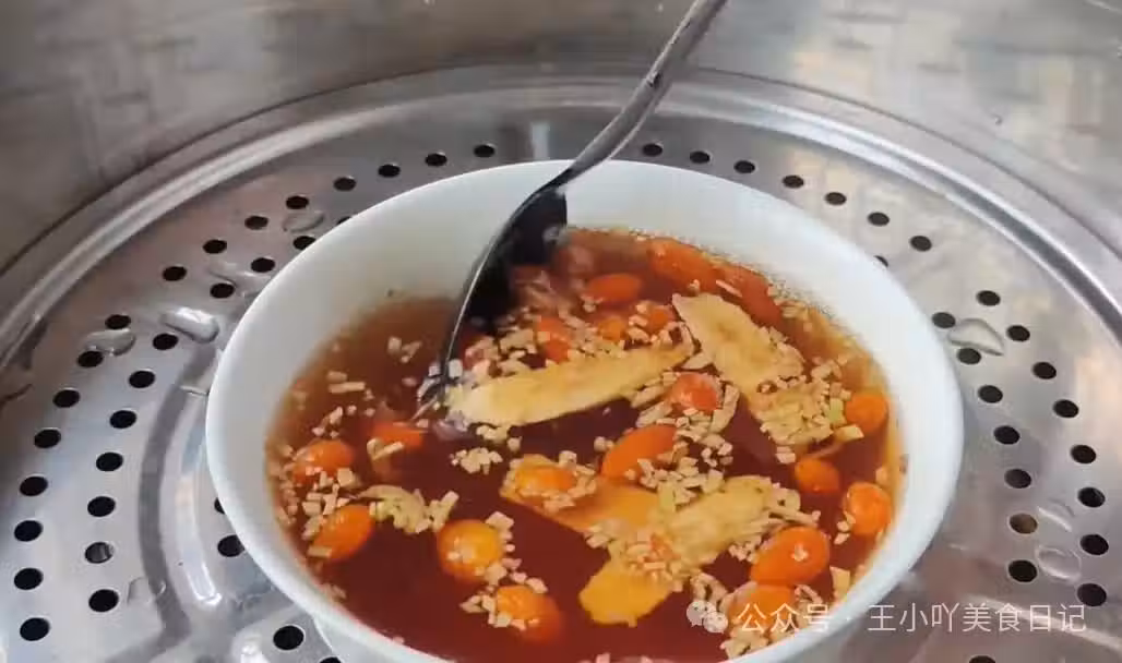 5.享用時刻:時間到後,關火,取出上面的盤子,一股濃郁的香甜氣息立即撲鼻而來。此時,可以看到碗中的湯汁顏色已經變得深邃,這是食材營養充分釋放的標誌。稍微放涼後,即可飲用。口感中既有黃芪的清香,又有生薑的辛辣,紅糖和枸杞則起到了很好的中和作用,使得整個飲品既滋補又爽口。