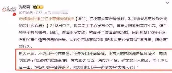 點名道姓批判汪小菲張蘭等人利用逝者惡意炒作,挑戰公序良俗,徹底把兩人釘在恥辱柱上。