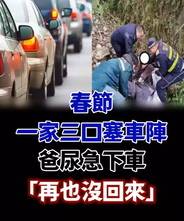 春節一家三口塞車陣 爸尿急下車「再也沒回來」