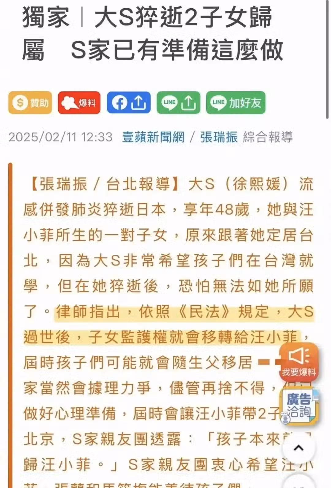 汪小菲作為孩子親生父親,在此情況下依法取得子女的監護權,今後他將承擔起兩名未成年子女的全面撫養責任以及相關財產事務的管理。