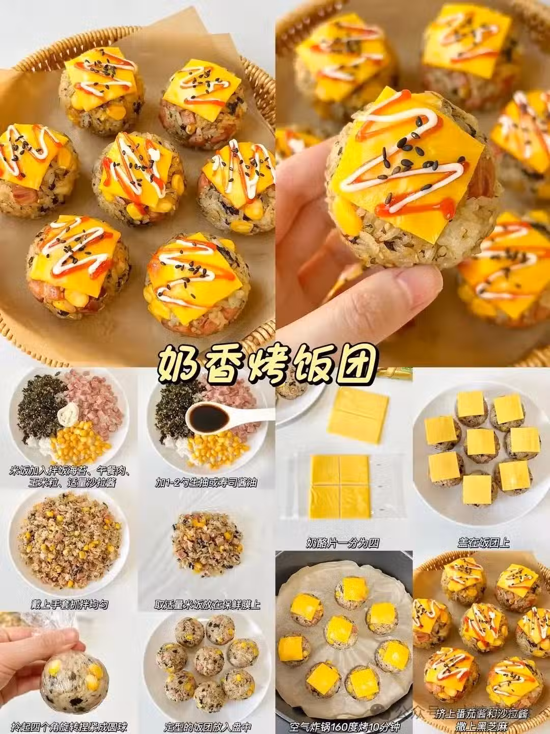 奶酪控的合法上癮,北海道人民的智慧結晶,剩飯拌黃油醬油捏成團,拉芝士進空氣炸鍋。160度10分鐘,烤出焦脆飯殼包裹的熔岩瀑布,隔壁小孩能饞到把門鈴按出火星子。