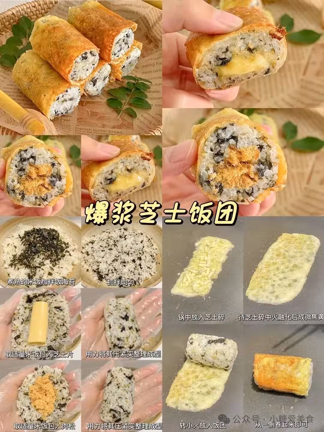 熱量刺客的背刺,拉絲芝士裹進飯糰壓成餅,煎到金黃。咬開的瞬間能上演《芝士瀑布逃生記》,就是衣服比嘴先嘗到味道這事挺費洗衣液的。 什麼米其林三星,什麼分子料理,都比不上自己捏的飯糰實在!畢竟這玩意兒最大的優點就是——捏得再丑也可以甩鍋給"手工溫度"。 今晚就翻出電飯煲,咱們紅塵作伴捏得瀟瀟洒灑!(要是成功了,不白看,記得給我搖人!)