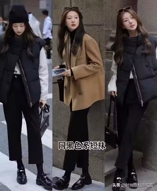 黑色直筒九分褲要穿搭要延續乾淨與利落感,細節的位置不能忽視,冬季讓腳踝的位置露膚穿,根本不保暖,還容易感冒,這樣得不償失,最佳的辦法是搭配短襪來穿,這樣既保暖又不會丟失顯瘦效果。鞋子的搭配不要選高幫的款式,會讓整個穿搭不夠流暢。