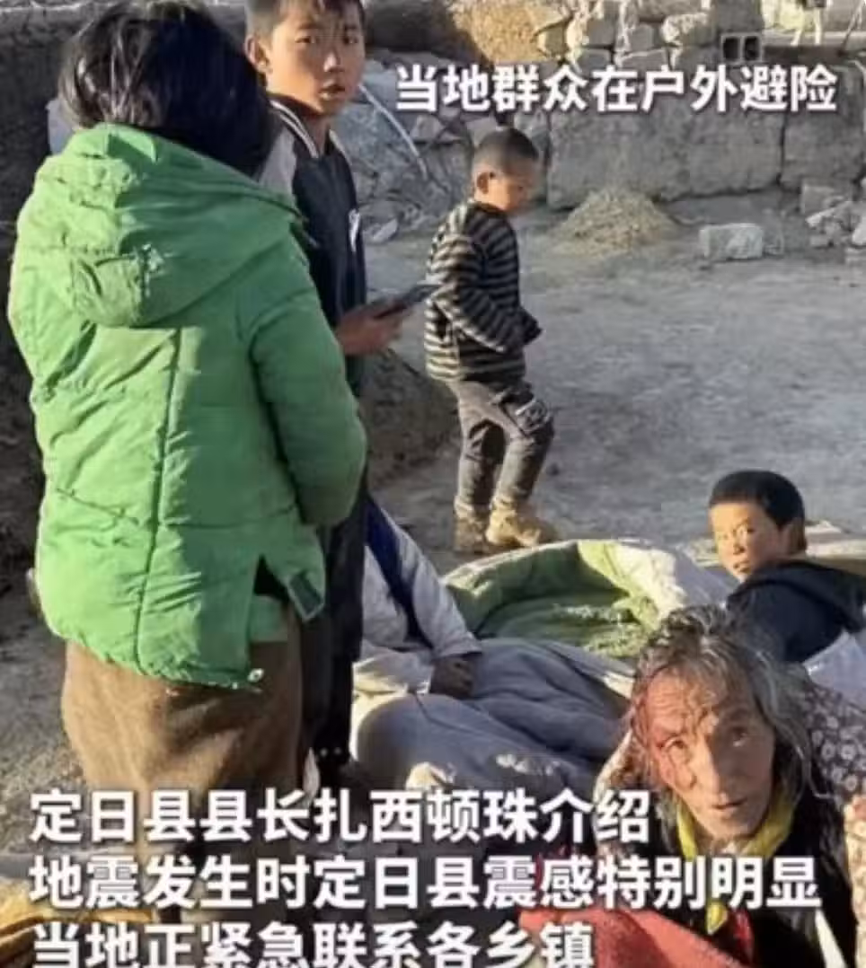 目前災情最為嚴重的就是震央附近的定日縣,約有6900位居民受到波及,27個村莊房屋倒塌嚴重。許多驚慌失措的民眾紛紛逃到戶外避難,不少人身上都帶著傷,有的人頭部還在不斷流血,但寧可在寒冷的戶外瑟瑟發抖,也不敢回到屋內。