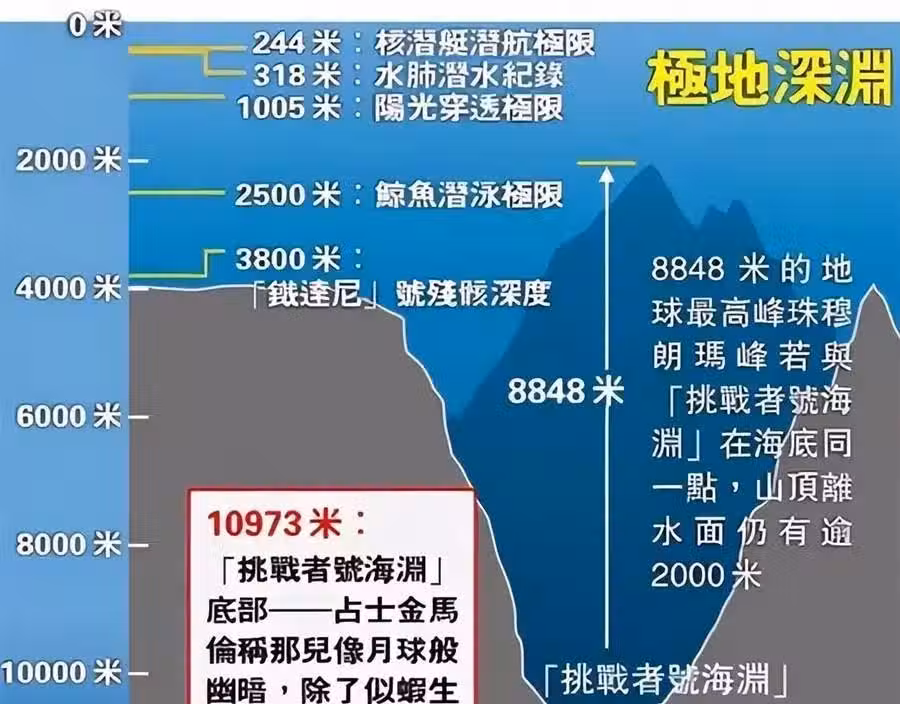 隨後,人們採用更先進的工具和方法,如聲納和衛星,對海溝深度和形態進行了更為精準的勘測 。但是,要真正親眼見到海溝底部,還是得藉助特製潛水艇,這些探測設備需要頂住海水巨大的壓力,堪比50架超大型噴氣機的重量壓在一個人身上。