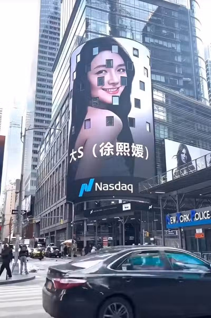 根據《ETtoday星光雲》報導,專業攝影師在影像平台分享的畫面中,可見紐約時代廣場標誌性的巨型電視牆上,輪播著大S一系列經典美照,她燦爛的微笑讓無數網友為之動容。