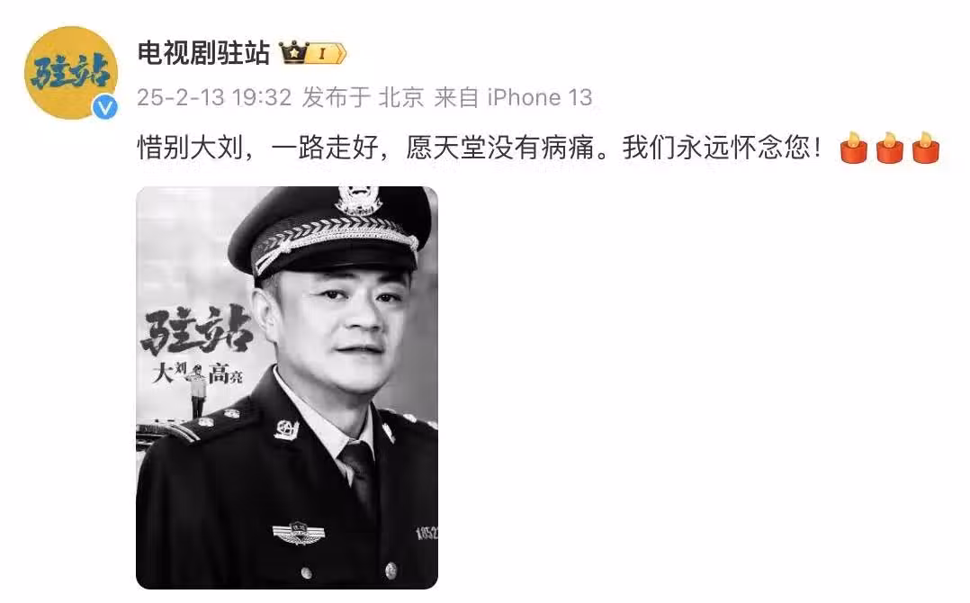 他所參與的電視劇《駐站》也在微博發文悼念。(圖/翻攝自電視劇駐站微博)