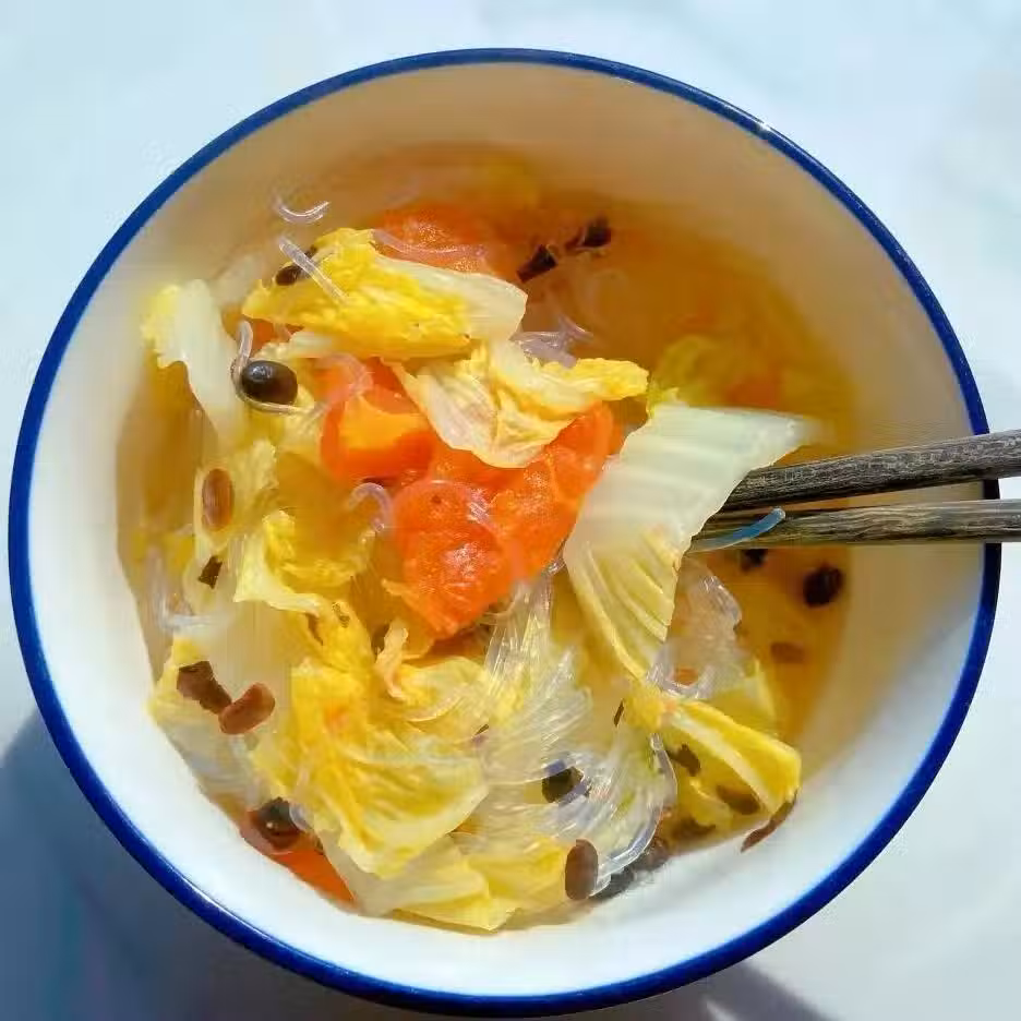 補充營養:粉絲供能,番茄含多種營養,增強免疫力。