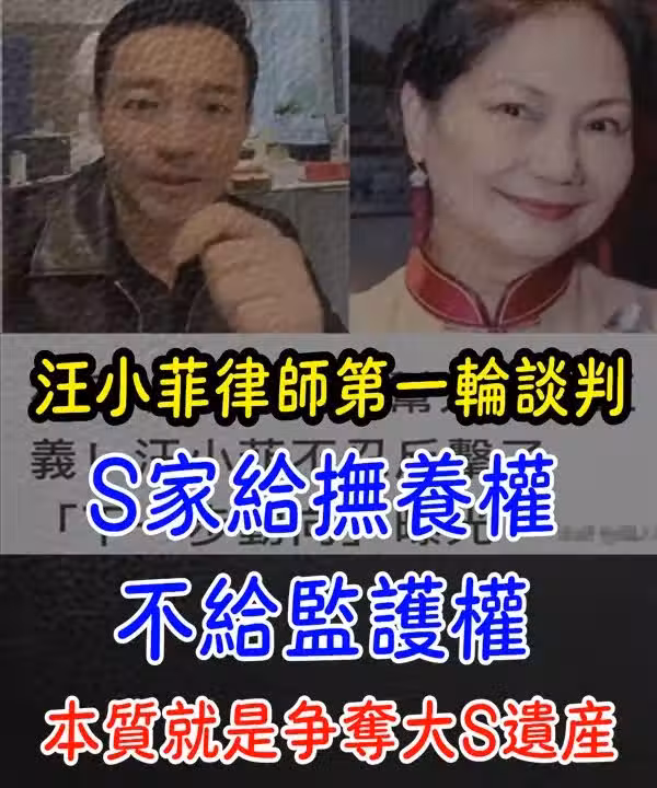 汪小菲律師第一輪談判,S家給撫養權不給監護權,根本就是爭奪大s遺產!