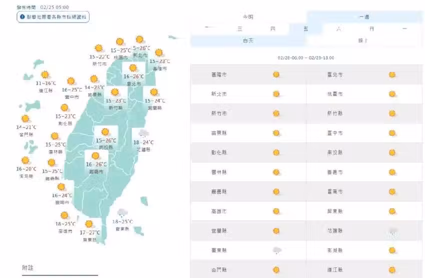 周五 (28) 縣市預報,翻攝自中央氣象署,下同
