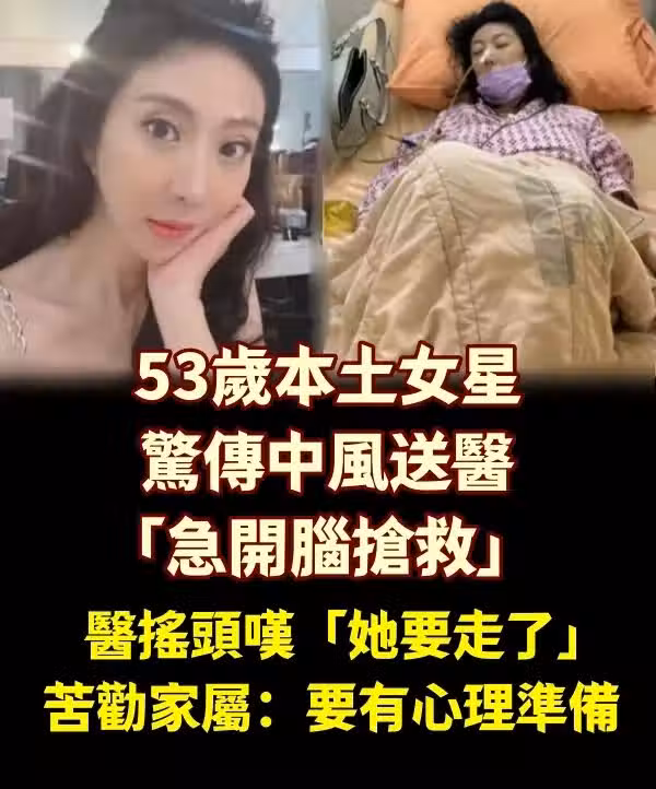 53歲本土女星驚傳中風送醫!「急開腦搶救」 醫搖頭嘆「她要走了」…