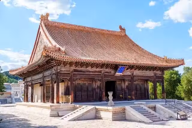 當初雍正修給自己修陵時,找不到足夠粗的金絲楠木,清泰陵隆恩殿內的八根明柱,只能採用包鑲的方法來加大粗度。