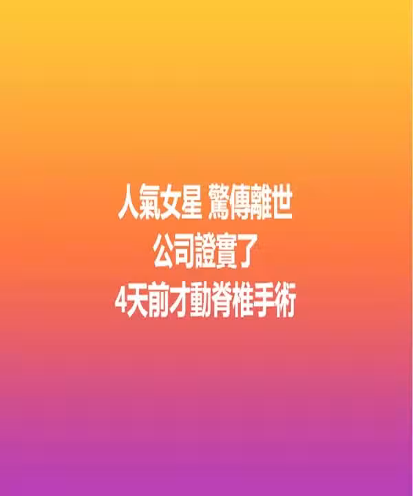 新竹人氣女星「驚傳離世」公司證實了,4天前才動脊椎手術