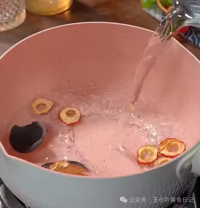 煮制過程:大火燒開後轉小火,慢燉約20分鐘。期間可輕輕攪拌,以免藥材粘底。注意觀察水量,避免煮干。