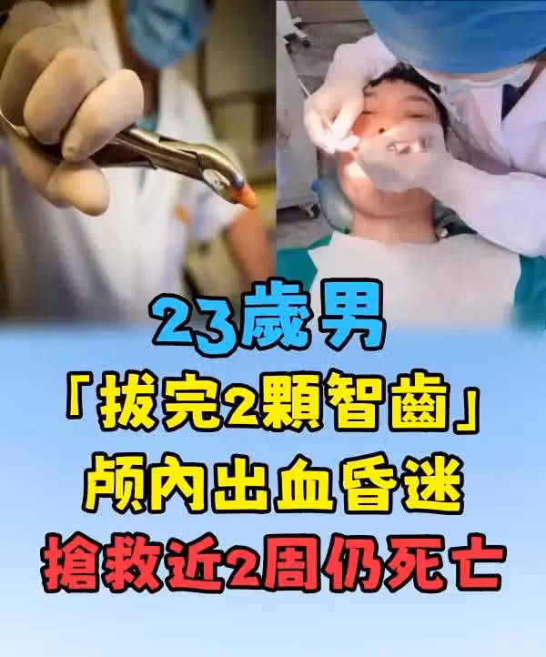 23歲男「拔完2顆智齒」顱內出血昏迷,搶救近2周仍死.亡