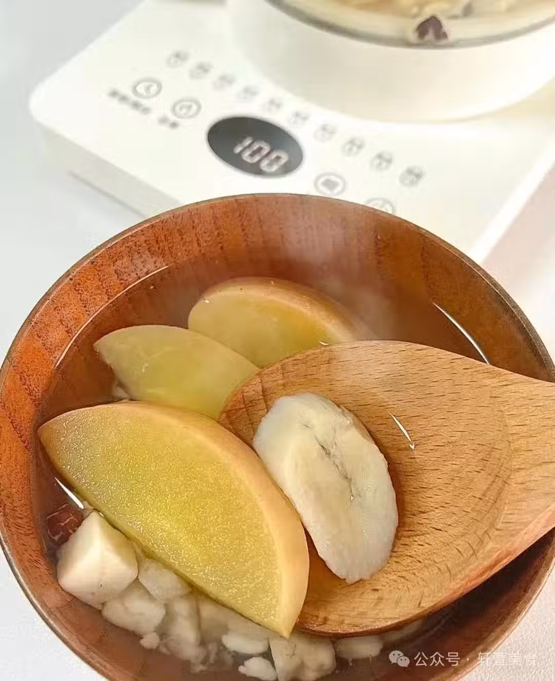 1個蘋果+10g茯苓+10g芡實+10g蓮子+10g淮山藥,加入800ml水,養生壺煮30min就可以~