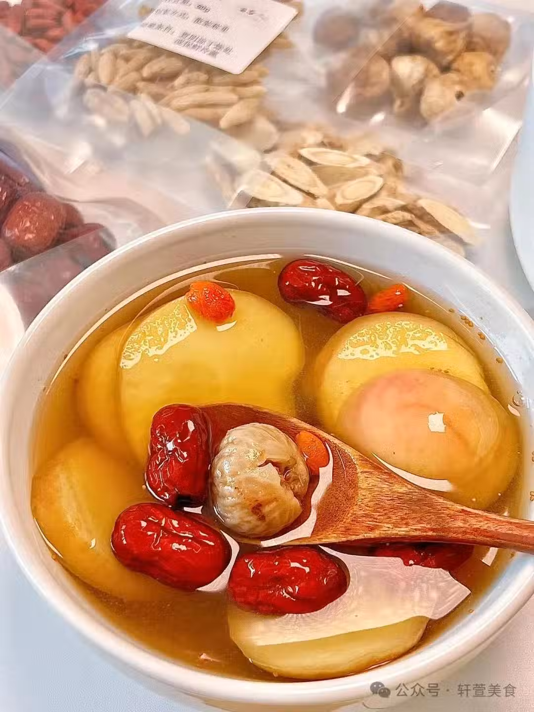 蘋果一個、黃芪5g、麥冬5g、紅棗5粒、無花果乾3粒、枸杞10粒