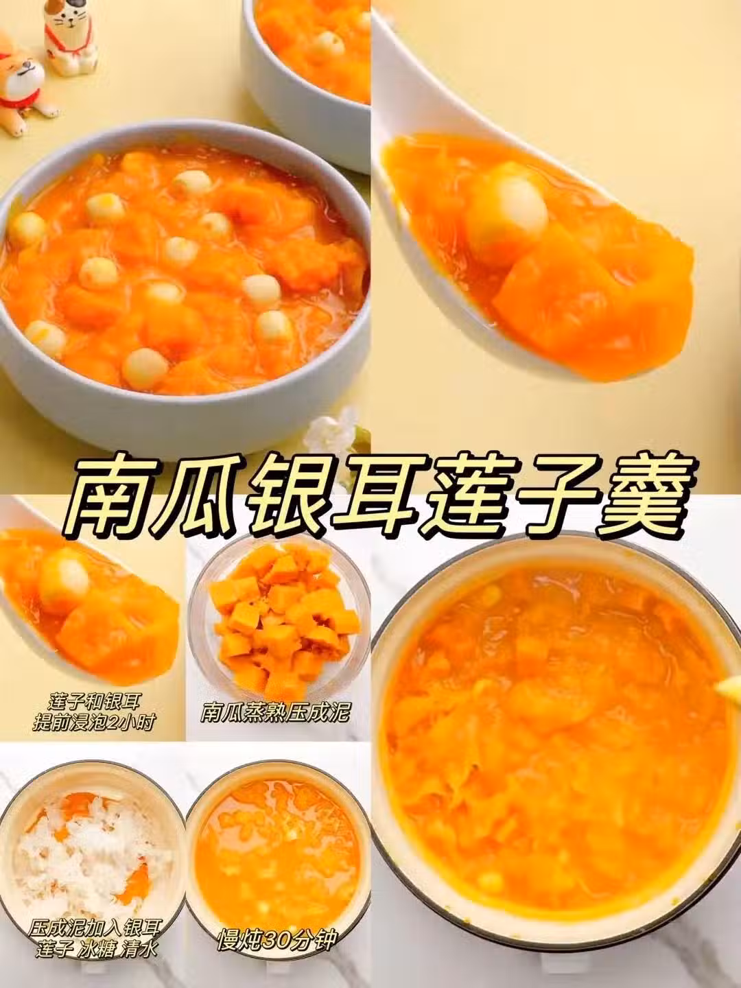 功效:南瓜銀耳蓮子羹口感清甜、細膩,適合秋冬季節食用。