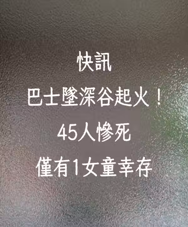 快訊/巴士墜深谷起火!45人慘死 僅有1女童僥倖生還……