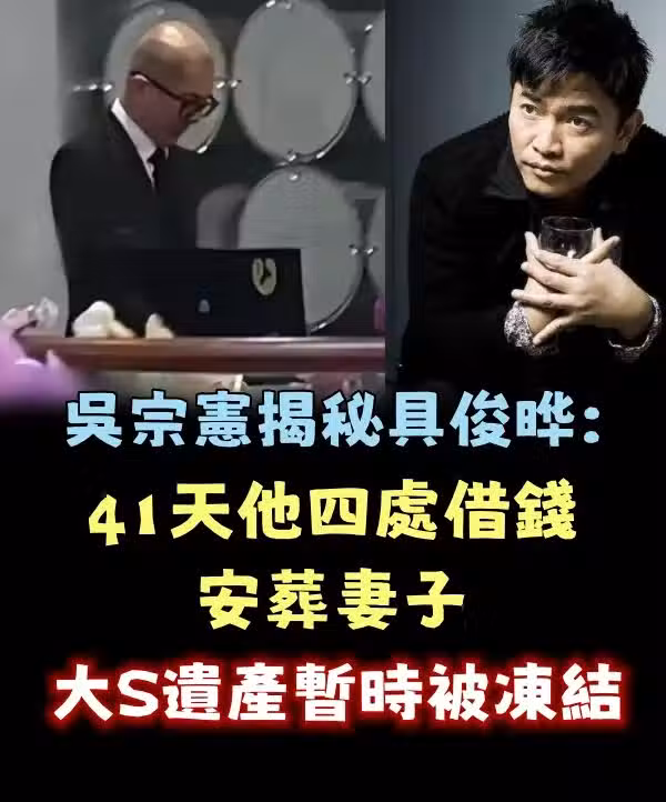 吳宗憲稱大S的所有遺產,包括房產等由於進入繼承的法定程序,現在暫時被凍結了,所以無法取出一分錢,具俊曄表面上是繼承了幾千萬,但實際上目前是錢包空空,而且他在當地沒有帳戶,他又不能使用大S的帳戶,導致身無分文,具俊曄四處借錢,才湊夠了安葬妻子的費用。