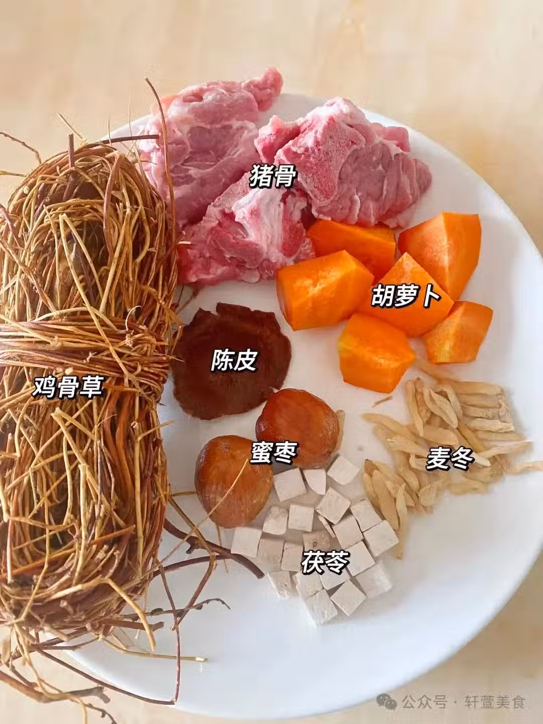 1️⃣雞骨草提前浸泡清洗乾淨,陳皮泡10分鐘刮囊