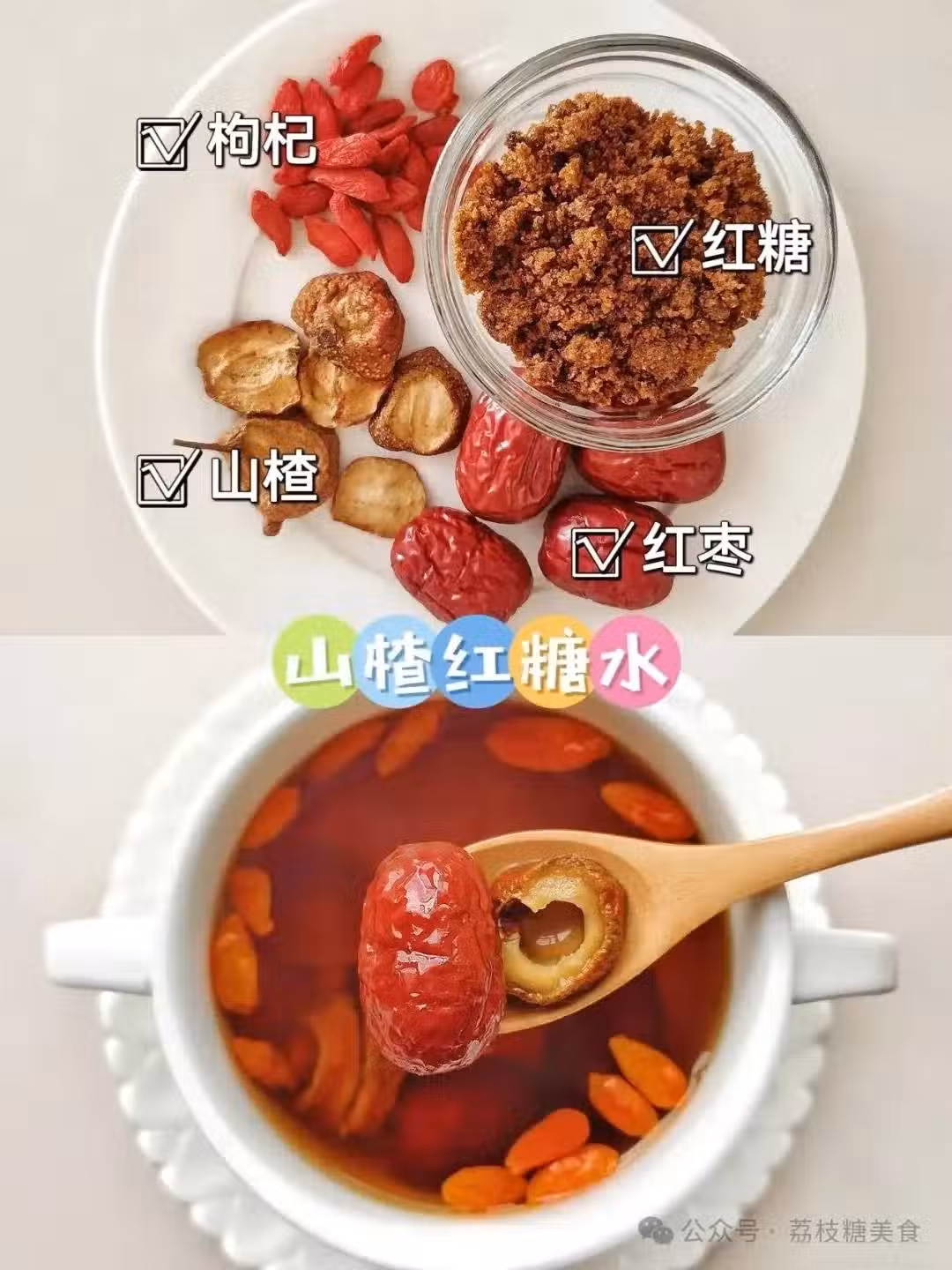 紅棗去核、枸杞、桂圓、山楂、紅糖