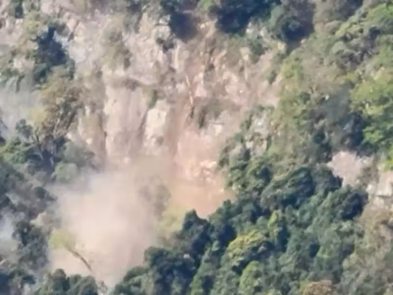 台灣時間3日上午發生大地震,苗栗縣南莊鄉加里山壁大片崩落,土石滾滾而下。(圖/楊文昌提供)