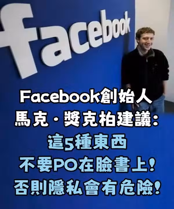 Facebook創始人馬克·獎克柏建議:這5種東西不要PO在臉書上,否則隱私會有危險....